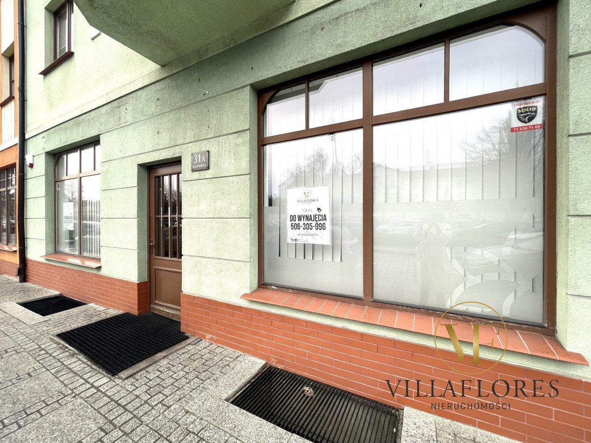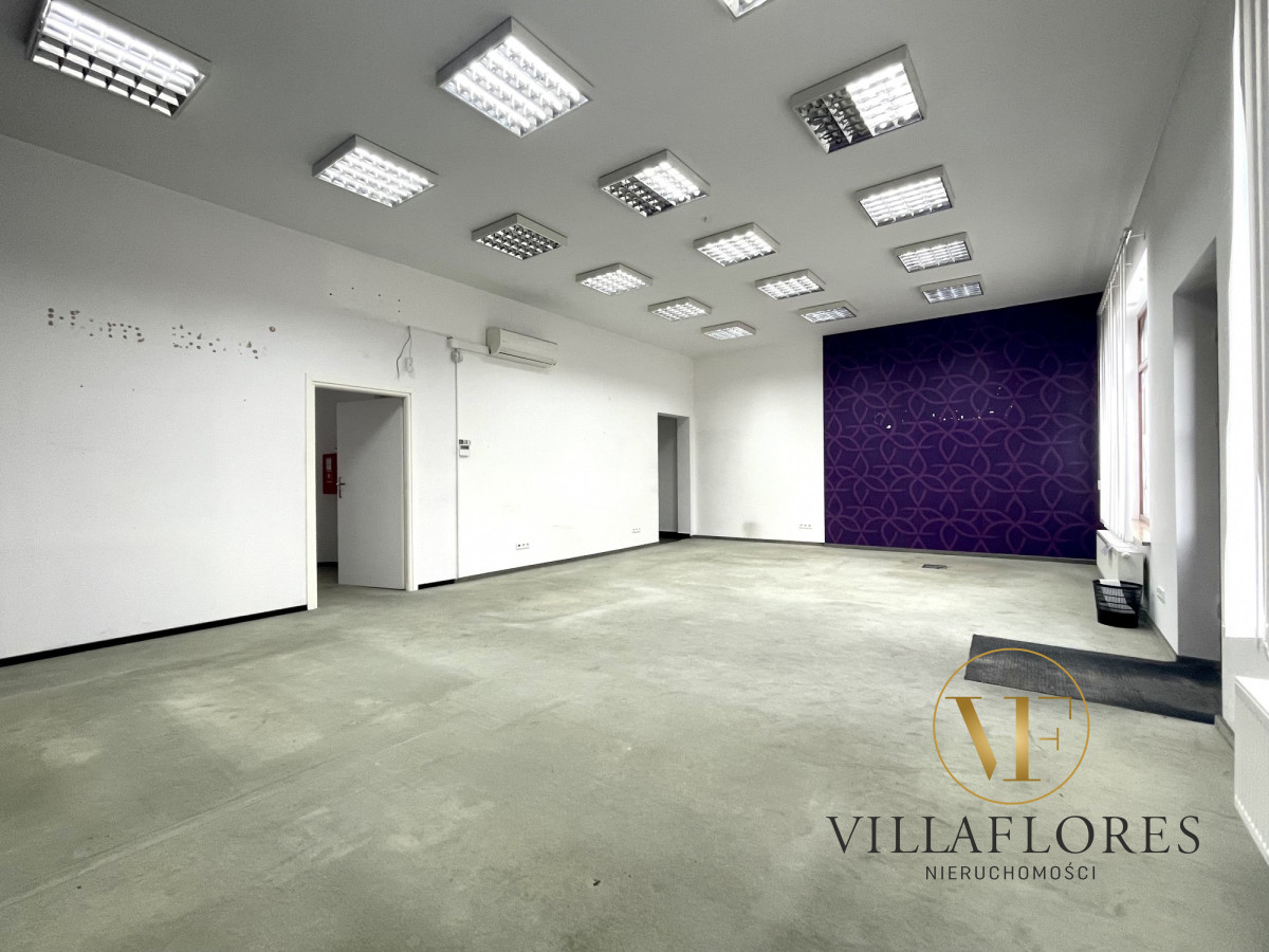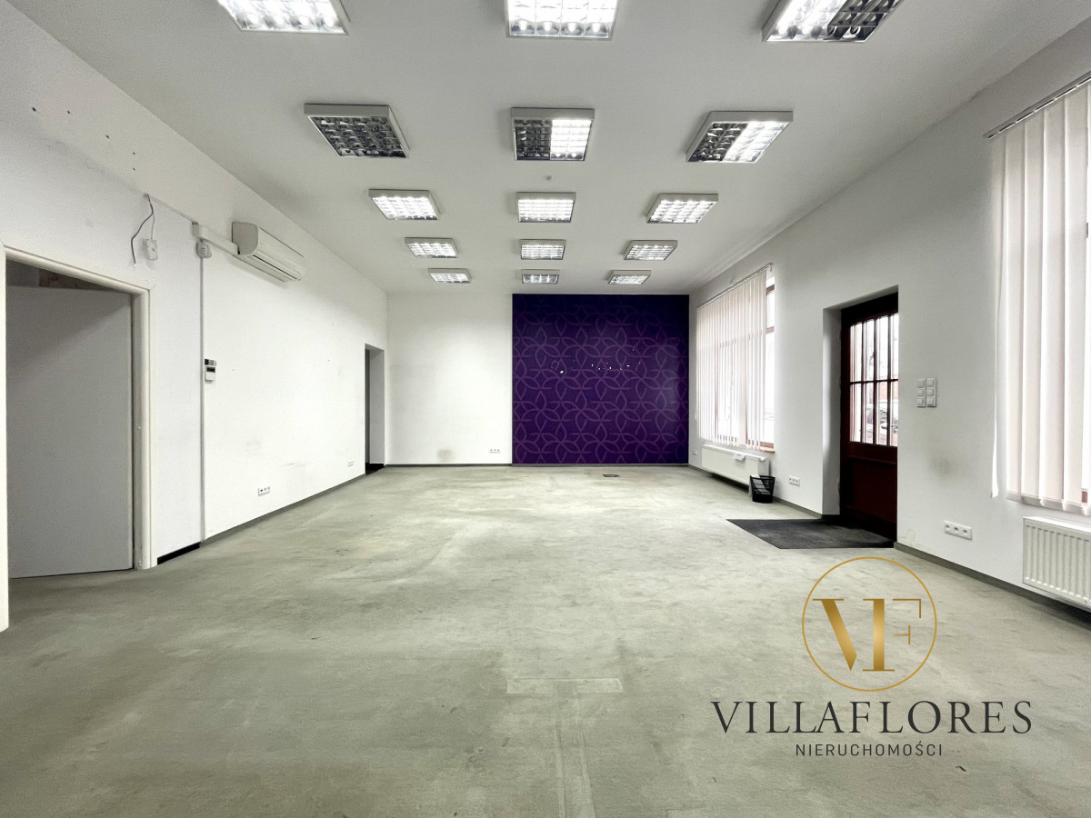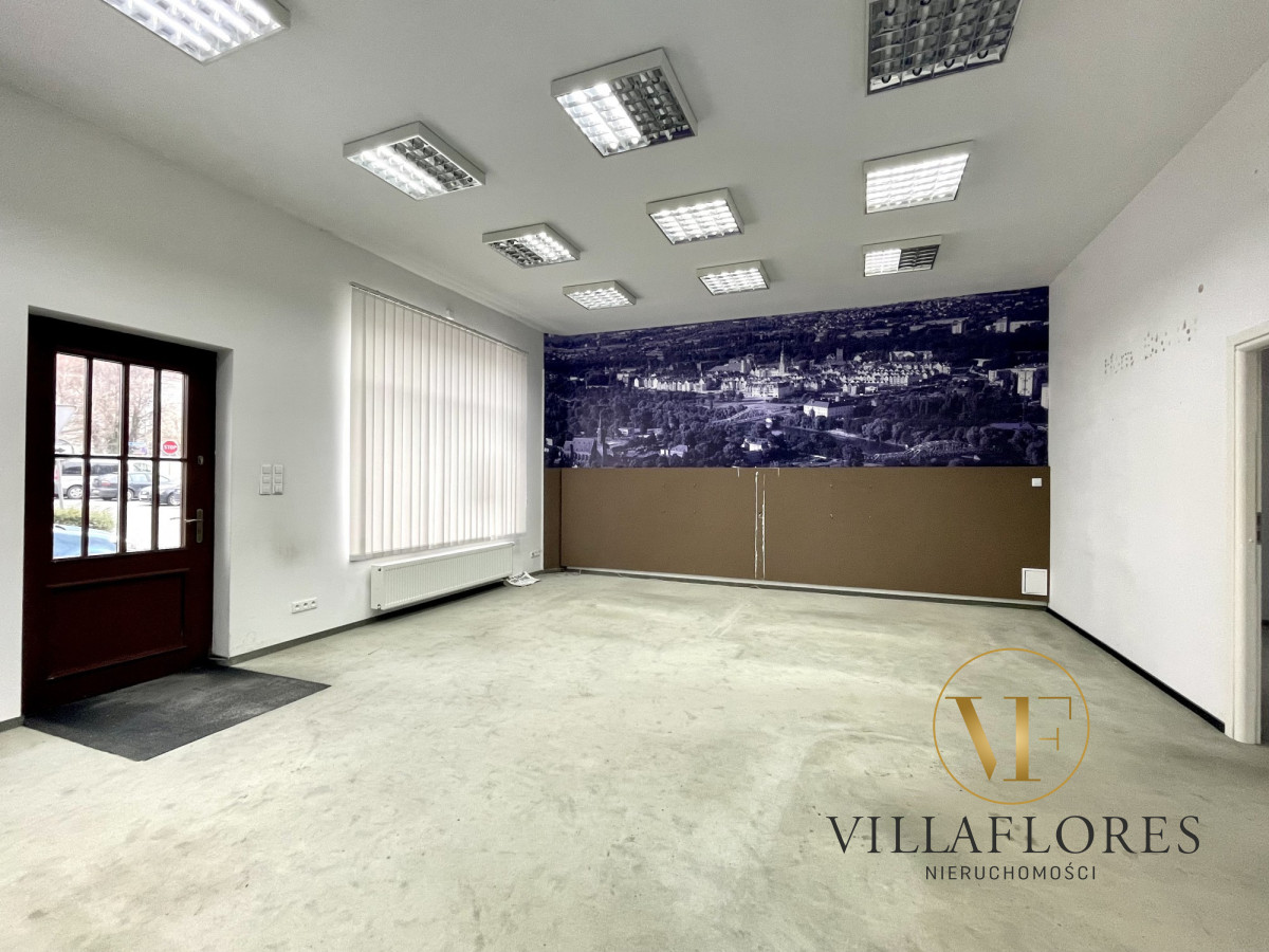 Powierzchnia parteru to ok 76m2, na której znajduje się duża przestrzeń biurowa wraz z dwoma dużymi witrynami. Do tego małe pomieszczenie - zaplecze również z oknem.