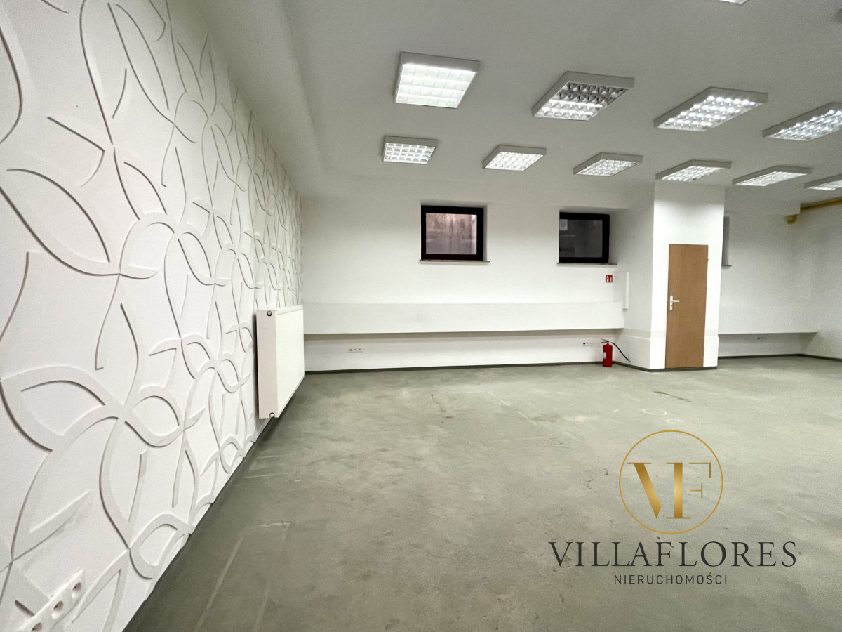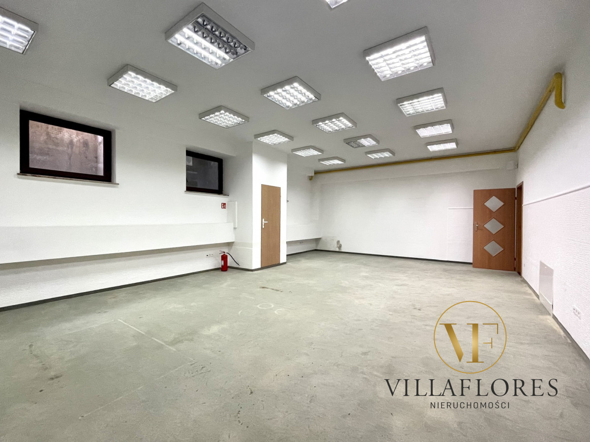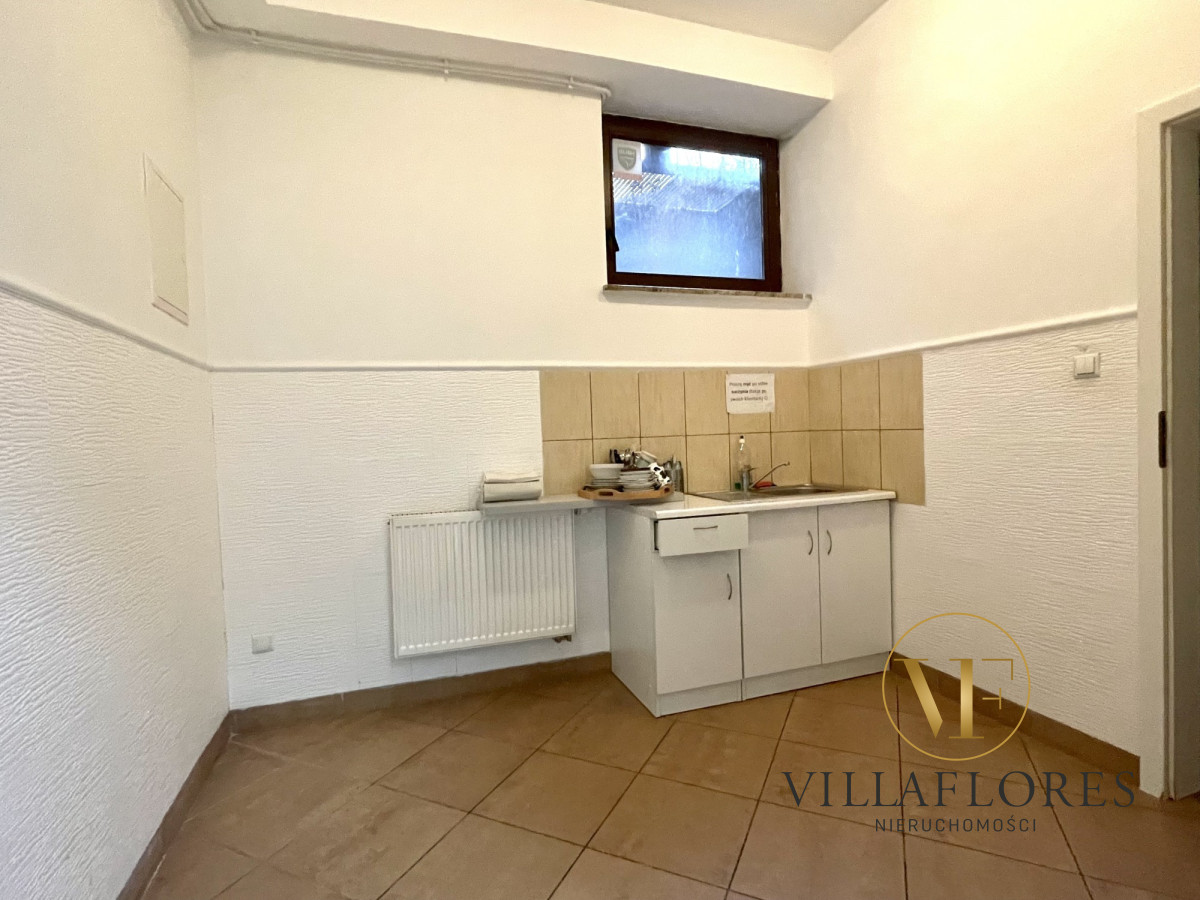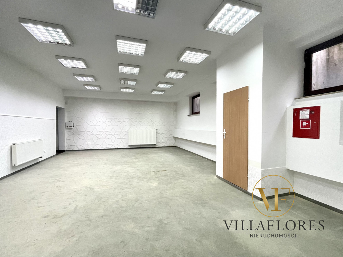 Powierzchnia parteru to ok 76m2, na której znajduje się duża przestrzeń biurowa wraz z dwoma dużymi witrynami. Do tego małe pomieszczenie - zaplecze również z oknem.